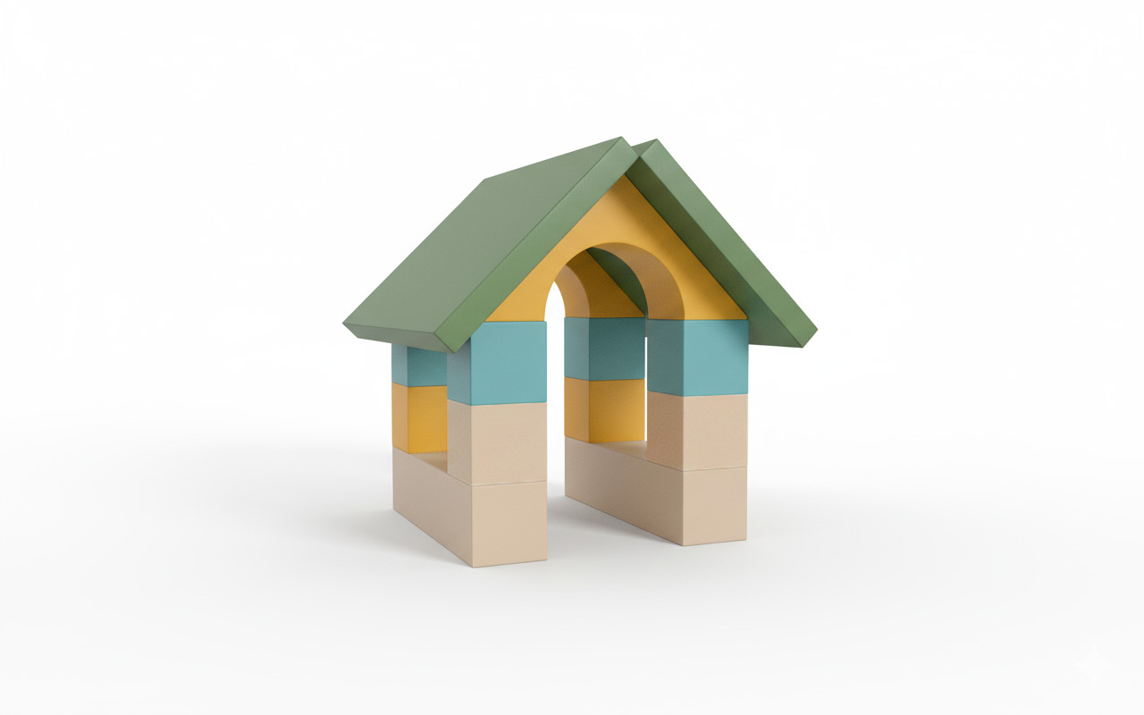Dette fine huset innbyr til mange timers gøyal lek med klosser i ulike størrelser.